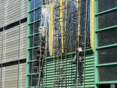 5、鋼結(jié)構(gòu)廠房所用保溫材料,以玻纖棉夾芯板為主,保溫效果好,保溫效果好。用于外墻的隔熱板,有效地避免了墻體的“冷橋”現(xiàn)象,保溫效果更佳。玻璃棉50mm左右厚度的熱阻,可以等于0.5m厚的磚墻。